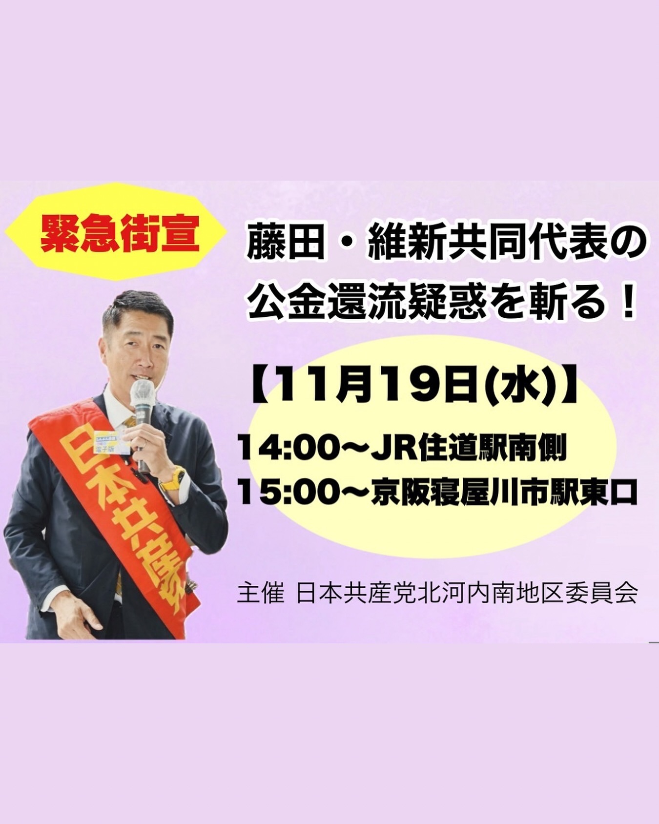 【緊急街宣 藤田・維新共同代表の公金還流疑惑を斬る!】