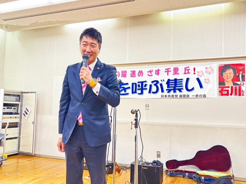 所信表明も予算審議もすっ飛ばし、通常国会開会日に解散しようとしているのは、高市自維政権が経済問題や統一協会の問題などで追い詰められている証拠です。この間の与党過半数割れという状況をつくりだしてきたのは、日本共産党の論戦と「しんぶん赤旗」のスクープがあったから。ここに確信を持ち、暮らしと平和を守る、希望の持てる政策を訴え、比例の躍進につなげていきたいです。吹田千里丘後援会でご挨拶。
