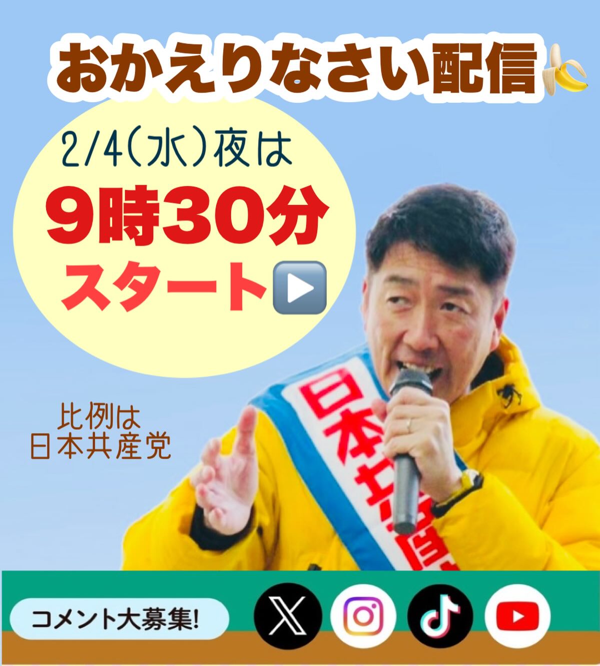 2/4(水)は夜9時30分スタートです!ぜひご視聴ください!