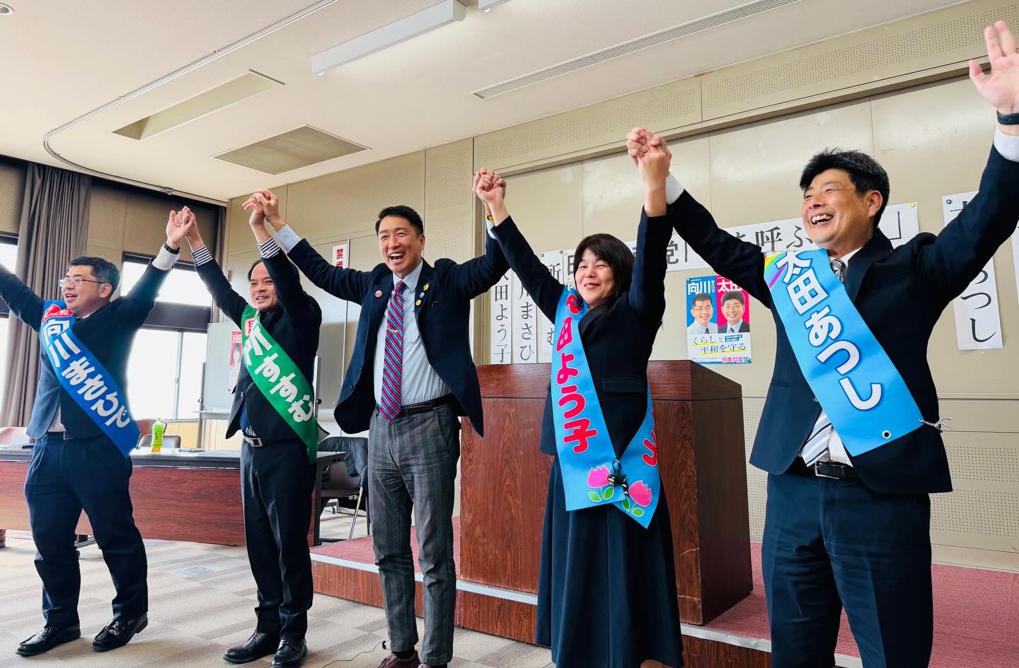 前回の県議選で惜敗した太田あつしさん、そして3人の市議団から議会報告が行われました。