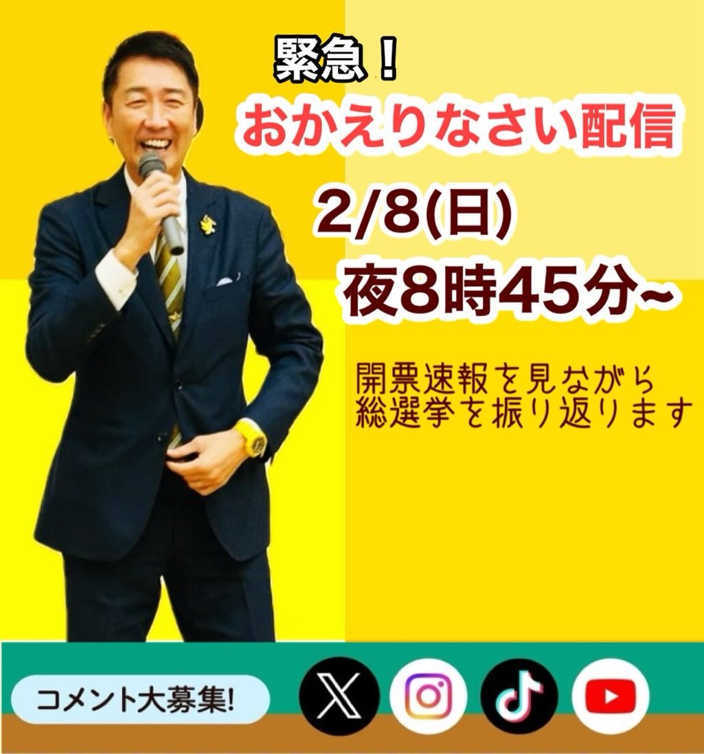 【おかえりなさいLive配信を今夜8時からお届けします】