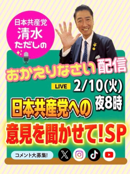 自民党の大勝をどう見るか、どうすれば日本共産党は議席を増やせるのか、視聴者からのご意見を募り、清水ただしと交流する企画にしたいと考えています。