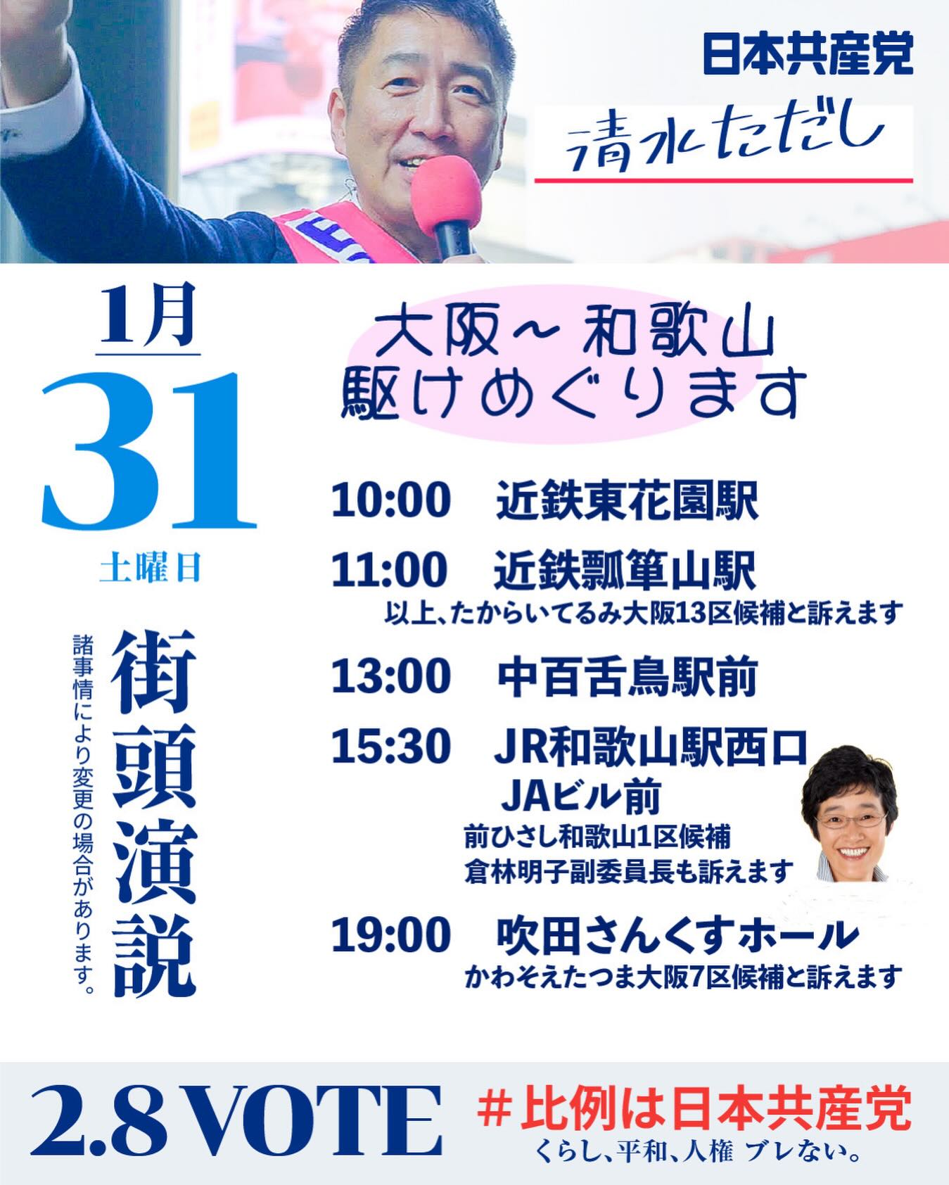 衆院選5日目となる1/31(土)は、大阪